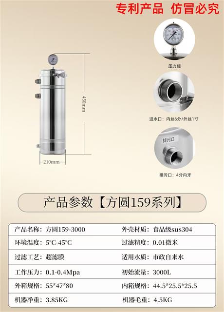 喜吉尔方圆159-3000L 管道超滤小钢炮